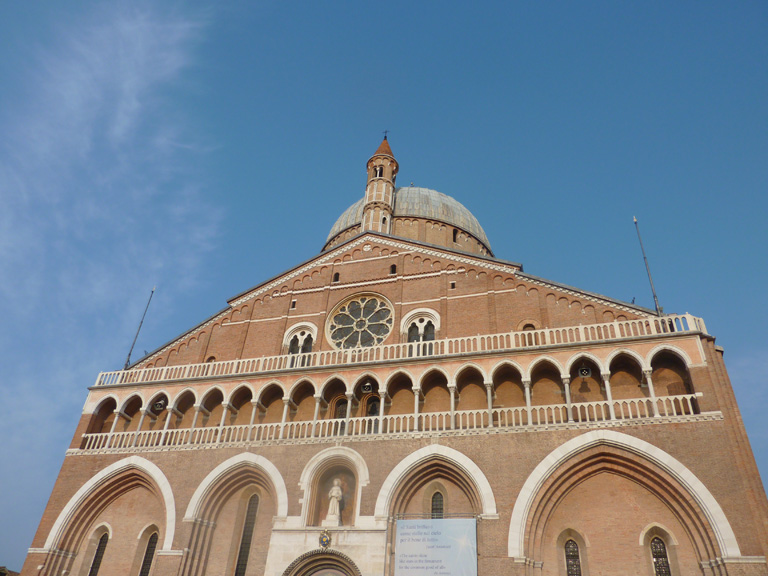 En effet, la basilique est de style roman, elle possède des dômes vénéto-byzantin et des clochers plutôt de style gothique. Cela donneun ensemble non pas hétéroclite, mais original et passionnant à découvrir. A l'origine, existait une petite église Santa Maria Mater Domini, dans laquelle était enterré Saint-Antoine. Rappelons qu'il s'agit de Saint Antoine de Lisbonne, dit le Thaumaturge (1195-1231). Enfant d'une haute lignée descendant de Charlemagne et Godefroy de Bouillonm, Antoine fut docteur de l'Eglise. Ami de Saint François d'Assise, excellent orateur, il devint lui-même franciscain et prêcha en Sicile, en France et à Padoue, où il mourrut le 13 juin 1231. Il est désormais fêté tous les 13 juin.