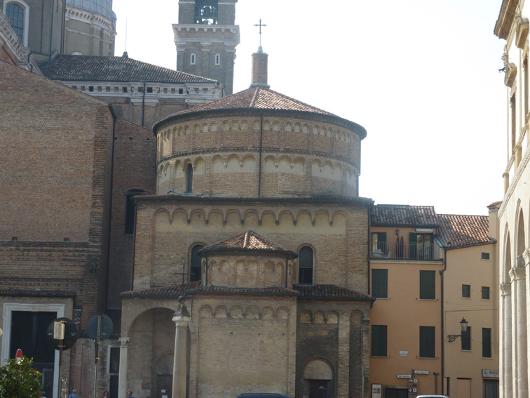 Le dôme est la troisième cathédrale de la ville de Padoue. La première cathédrale fut construite à la suite de l'édit de Constantin de 313 et détruite par le tremblement de terre du 3 janvier 1117. Elle fut reconstruite en style roman avec un baptistère consacré par Guido, patriarche de Grado en 1291 puis refaite à la demande de Fina del Buzzacarini, épouse de François l'Ancien, avec ses fresques en 1375. En 1551, le projet probablement de Michel-Ange, pour la nouvelle cathédrale fut approuvé et la construction se prolongea jusqu'en 1754, laissant la façade inachevée. Le baptistère est couvert de fresques du XIVe siècle. Elles sont colorées, lumineuses et dans un tout autre style il est vrai, n'ont rien à envier à celles de Giotto (qui d'ailleurs influença beaucoup Giusto de Menabuoi